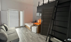 Strefa nocna składa się z 4 pokojów (80 m2). Pokoje wyposażone są w lodówkę, telewizor smart, oświetlenie górne i lampki nocne, oraz szafę na ubrania. Posiadają antresolę z dodatkowym miejscem do spania na materacu. Pokoje przeznaczone są maksymalnie dla 16 osób. Każdy z pokojów posiada: 1 podwójne łóżko 140 cm, 1 kanapę rozkładaną 110 cm, 1 materac typu futon 90 cm, lodówkę, smart tv. W pokojach znajduje się prywatna łazienka z prysznicem, ręcznikami, suszarką do ubrań, suszarką do włosów i podstawowymi przyborami toaletowymi (mydło, papier toaletowy).