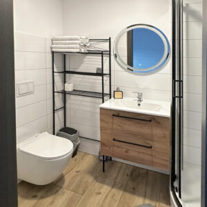 Wybór naszej oferty to doskonała propozycja dla wszystkich osób, które cenią sobie swobodę oraz chcą spędzić urlop w komfortowych warunkach. Wybór domku to propozycja, która pozwala na dowolne zarządzanie czasem w kwestii posiłków czy ciszy nocnej – to zdecydowana przewaga nad hotelami, w których należy dostosować się do ustalonych zasad. Taras i bezpośrednie wyjście na ogród z salonu pozwalają na organizację grillowania i spotkań plenerowych oraz radość z otaczającej przyrody.